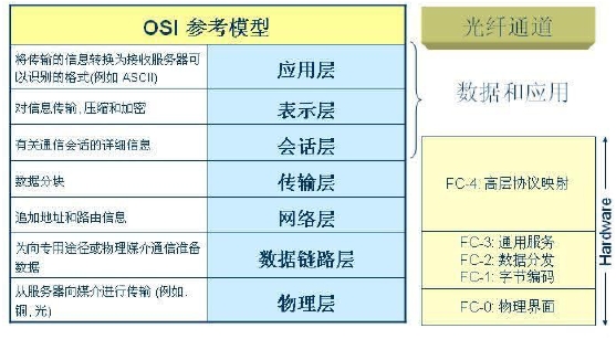 FC-0:物理層,定制了不同介質(zhì),傳輸距離,信號機制標準,也定義了光纖和銅線接口